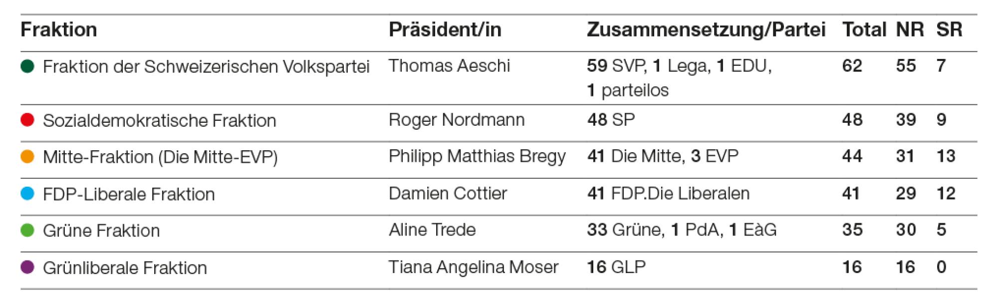 The National Council and the Council of States meet for three-week sessions in spring, summer, autumn and winter to deliberate and rule on items of business. The two chambers meet separately, but under the same roof of the Parliament Building in Bern. Council Office, parliamentary group and committee meetings take place inbetween sessions.