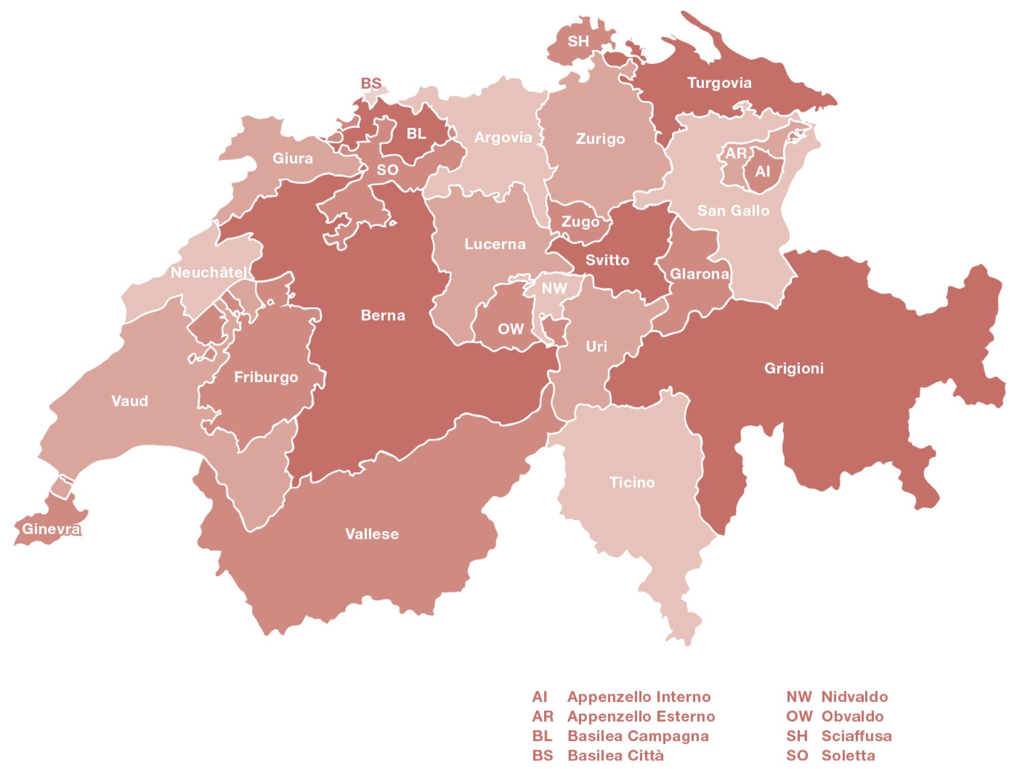 La Svizzera è un Paese di dimensioni modeste con una popolazione di 8,6 milioni di persone. Si suddivide in 4 regioni linguistiche e 26 Cantoni