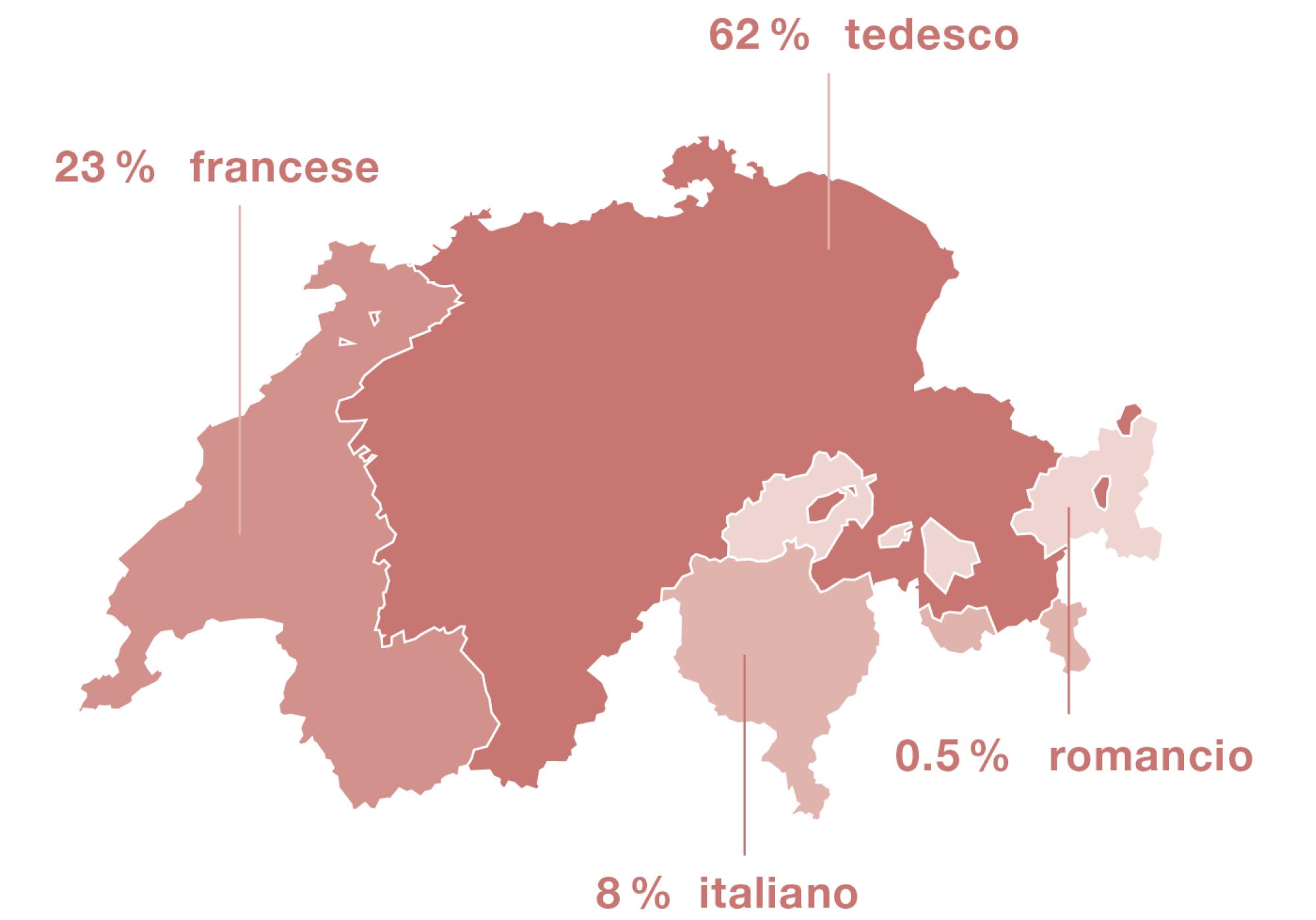 La Svizzera è un Paese plurilingue; le lingue nazionali sono il tedesco, il francese, l'italiano e il romancio. Il 62 % della popolazione parla prevalentemente (svizzero) tedesco, il 23 % francese, l'8 % italiano e lo 0,5 % romancio. Il 25 % della popolazione parla inoltre un'altra lingua principale. Molti indicano di avere due lingue principali e sono dunque bilingue.