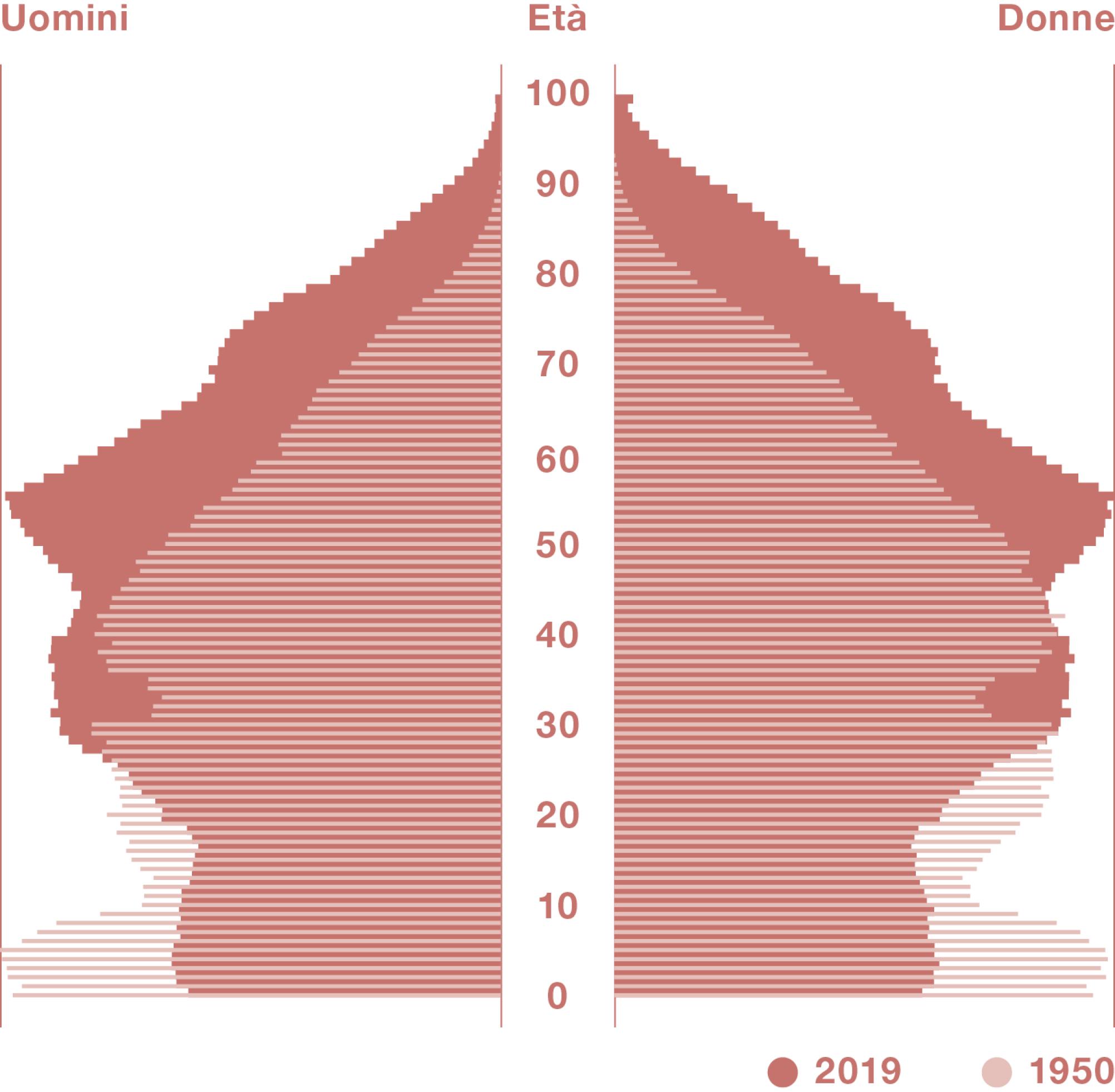 In Svizzera la popolazione è sempre più anziana e ha sempre meno figli. L’aspettativa media di vita è una delle più alte al mondo: 82 anni per gli uomini e 86 per le donne. Le donne hanno in media 1,5 figli. La percentuale di persone di età superiore ai 64 anni nella popolazione è aumentata, mentre quella delle persone di età inferiore ai 20 anni e di quelle di età compresa tra i 20 e i 64 anni è diminuita.