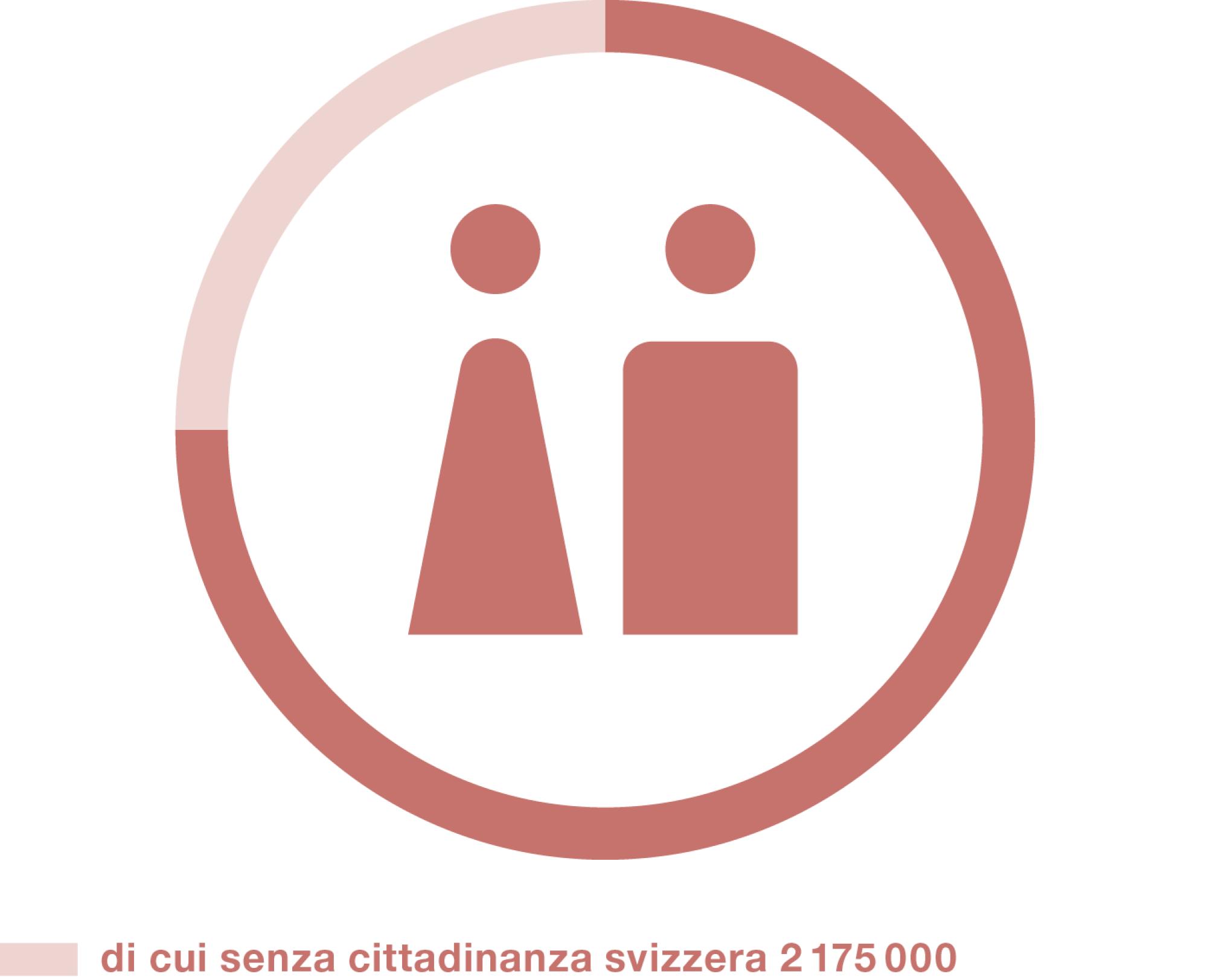 In Svizzera vivono 8,6 milioni di persone, un quarto delle quali senza passaporto svizzero. Più della metà degli stranieri è nata o vive in Svizzera da almeno dieci anni. La maggior parte della popolazione straniera proviene da un Paese dell’UE. La percentuale maggiore è costituita da persone provenienti dall’Italia (il 15 % della popolazione straniera), dalla Germania (il 14 %) e dal Portogallo (il 12 %).
