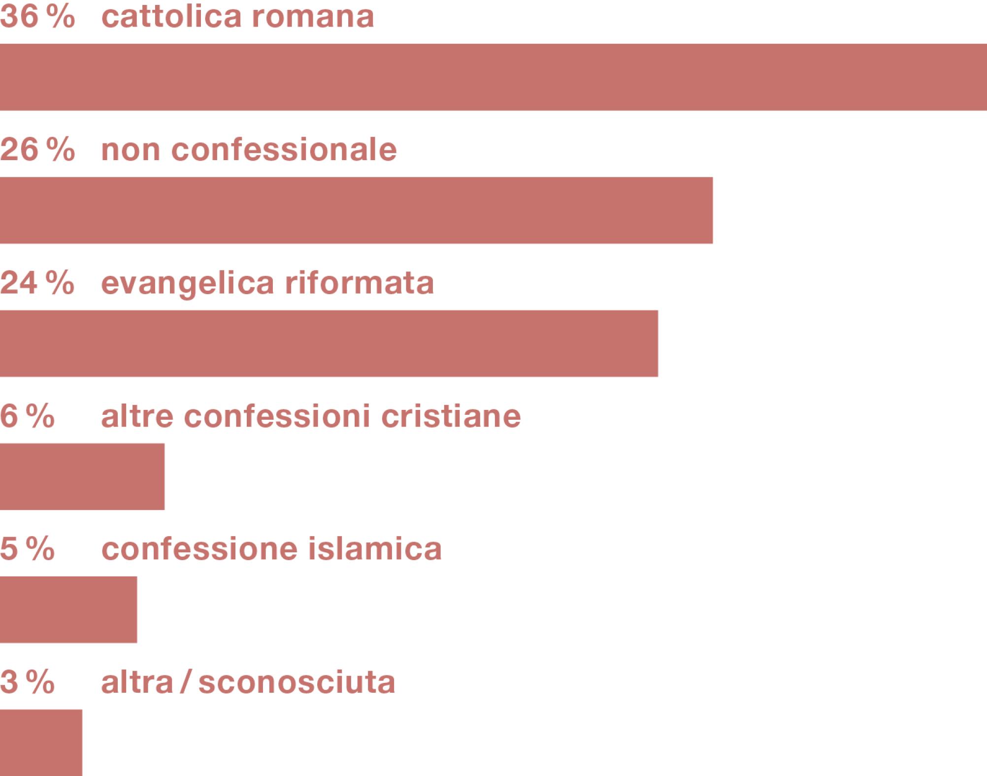 Il 66 % della popolazione appartiene a una confessione cristiana e il 26 % si definisce aconfessionale, ma quest’ultima percentuale è in aumento da anni. Il panorama religioso sta cambiando: le due principali istituzioni cristiane, la Chiesa cattolica romana e la Chiesa evangelica riformata, stanno perdendo peso. Nel 1970, il 96 % della popolazione era riformata (49 %) o cattolica (47 %).