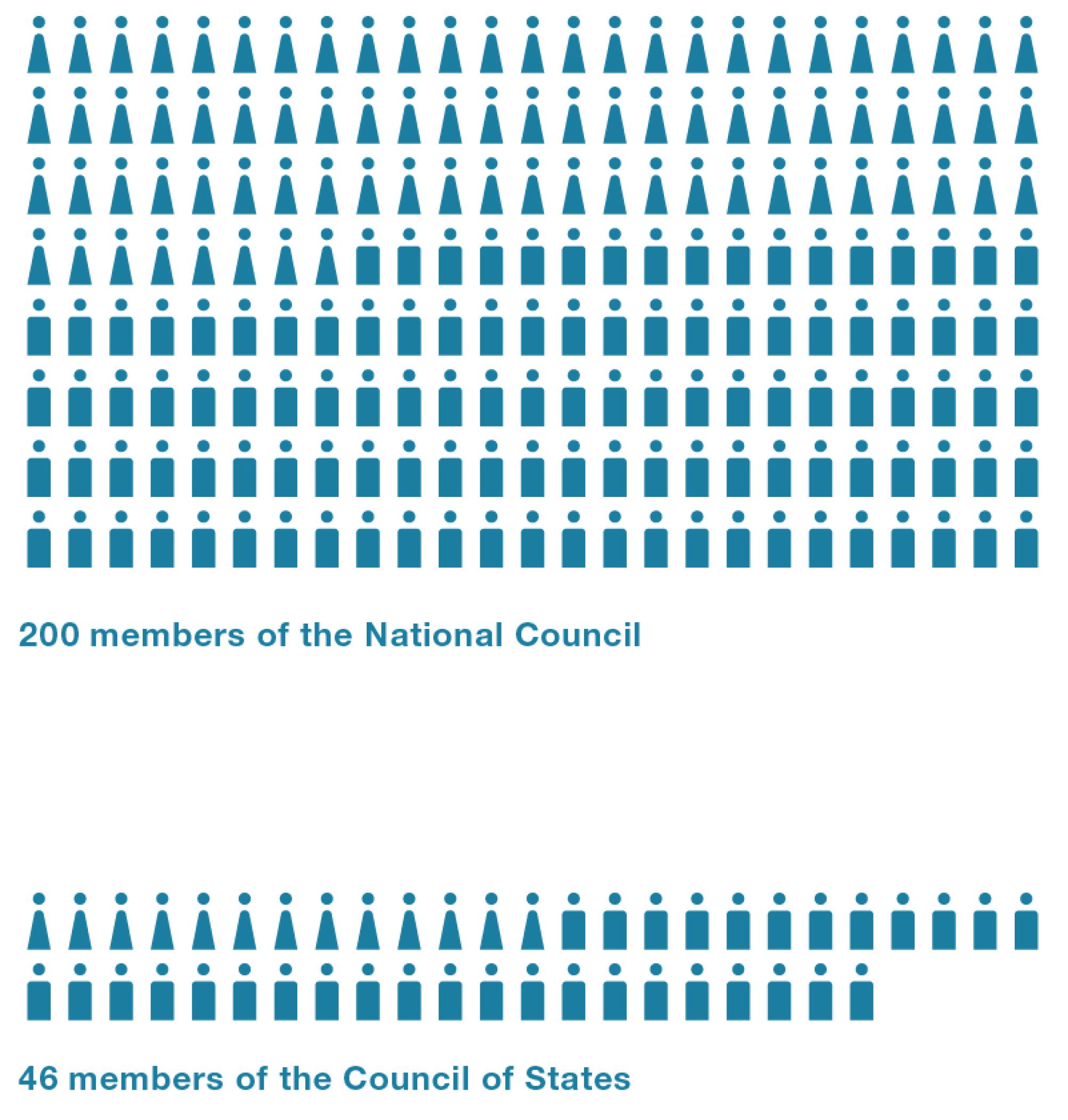 the federal budget and exercises oversight over the Federal Administration. Parliament is elected by the People. It